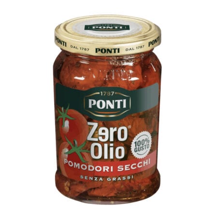 The Ponti Zero Olio Sun-Dried Tomatoes are not like ordinary sun-dried tomatoes. You see they maintain their flavour, fragrance and aroma in a natural sauce without the addition of oil. That’s because the clever people at the Ponti Taste Laboratory have developed an innovative recipe for you to enjoy.